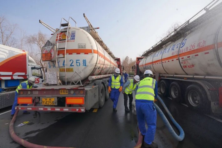 演练模拟12月29日下午1点44分一辆满载石脑油的危化品运输槽罐车,在421省道六合马鞍街道河王湖段发生泄漏。事故发生后,槽罐车驾驶员立即拨打110报警,同时尝试堵漏未果。接报后,属地政府部门迅速启动应急响应机制,六合区应急、公安、消防、环保、交通、卫健、宣传等部门和属地街道迅速响应,共派出消防车、警车、救援车、拖车、工程车等专业装备35台(套)、救援人员150余人参与现场处置,第一时间开展现场封控、围堰封堵、水雾稀释、环境监测等。六合区常务副区长在现场指挥调度,南京市应急局分管副局长赴现场指导救援,经过技术专家组和专业救援队伍现场堵漏及倒罐操作后,险情得到有效控制。